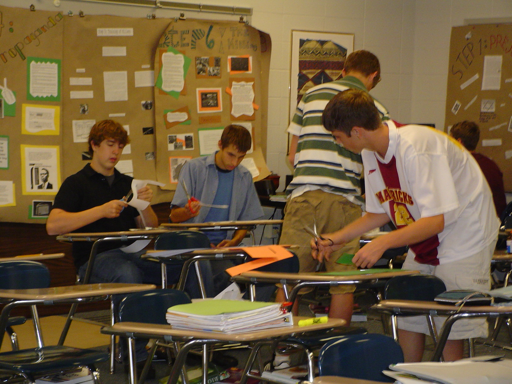 My students read Night first. They read it without a lot of preface, and they are full of questions during the three short days it takes them to finish the book. By the end, they want to know more, and it is then that I send them on a research mission. The students work collaboratively to construct poster essays that will reveal the pattern of genocide. They draw straws to form groups, and I give each group a title for the poster—the name of a stage in the pattern—and a few keywords to get them started. For the next several days, my room resembles an art studio—construction paper, scissors, rubber cement, watercolors, and magic markers dominate the landscape. Kids cluster around the tables, lie on the floor. They labor over their posters, placing pictures precisely and writing captions that capture the essence of the photographs they’ve downloaded. They know that what they are researching and presenting in their posters is too important to treat superficially, and their posters powerfully illustrate the progress from prejudice to mass murder.