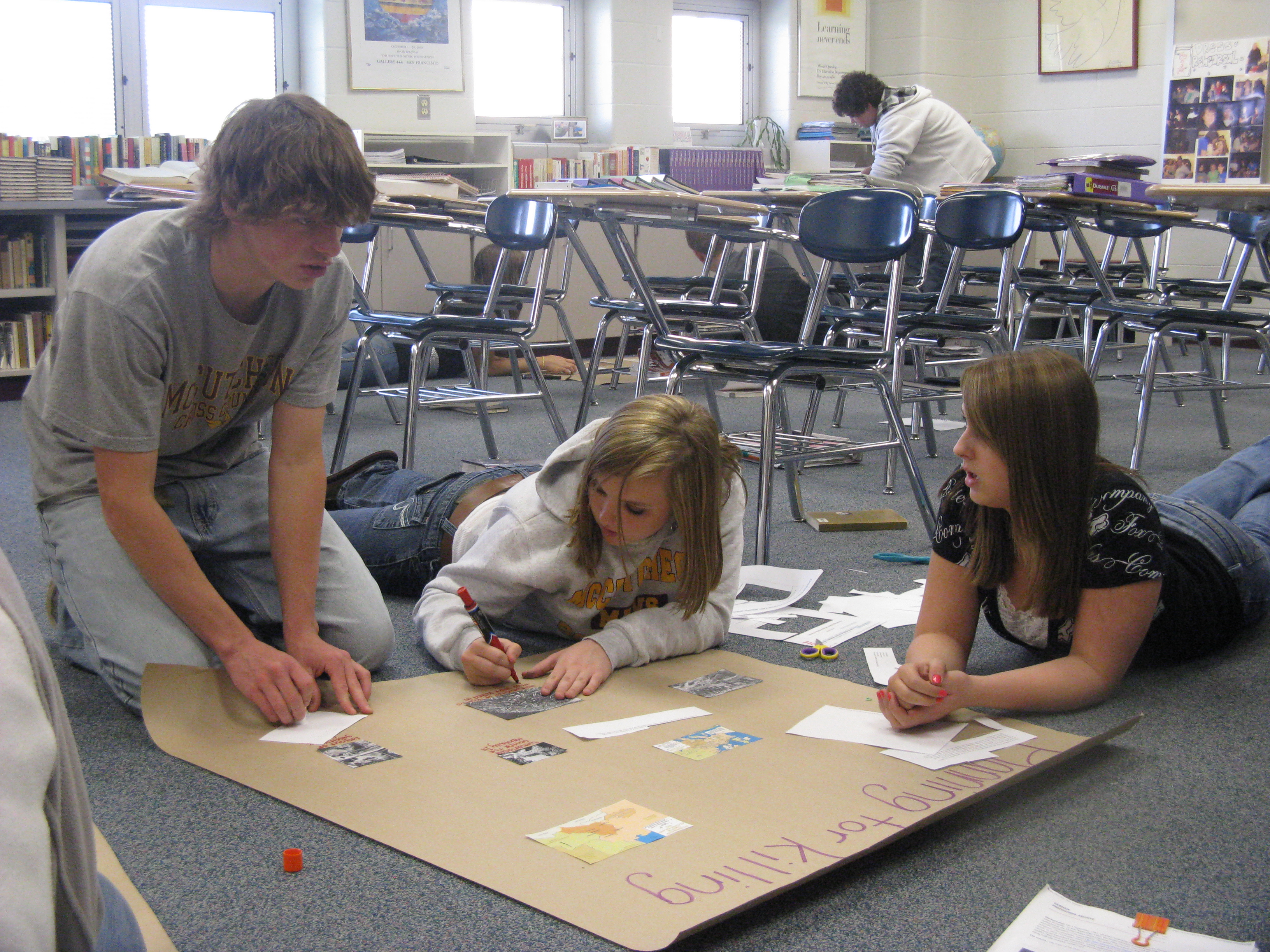 Then, after a brief introduction, I instruct them to repeat the research—this time researching Rwanda. They create, again, poster essays that depict the progress of the genocide there—from the identity cards issued by the Belgians when Rwanda was still a colony to the hate radio broadcasts that mobilized the Interahamwe.
