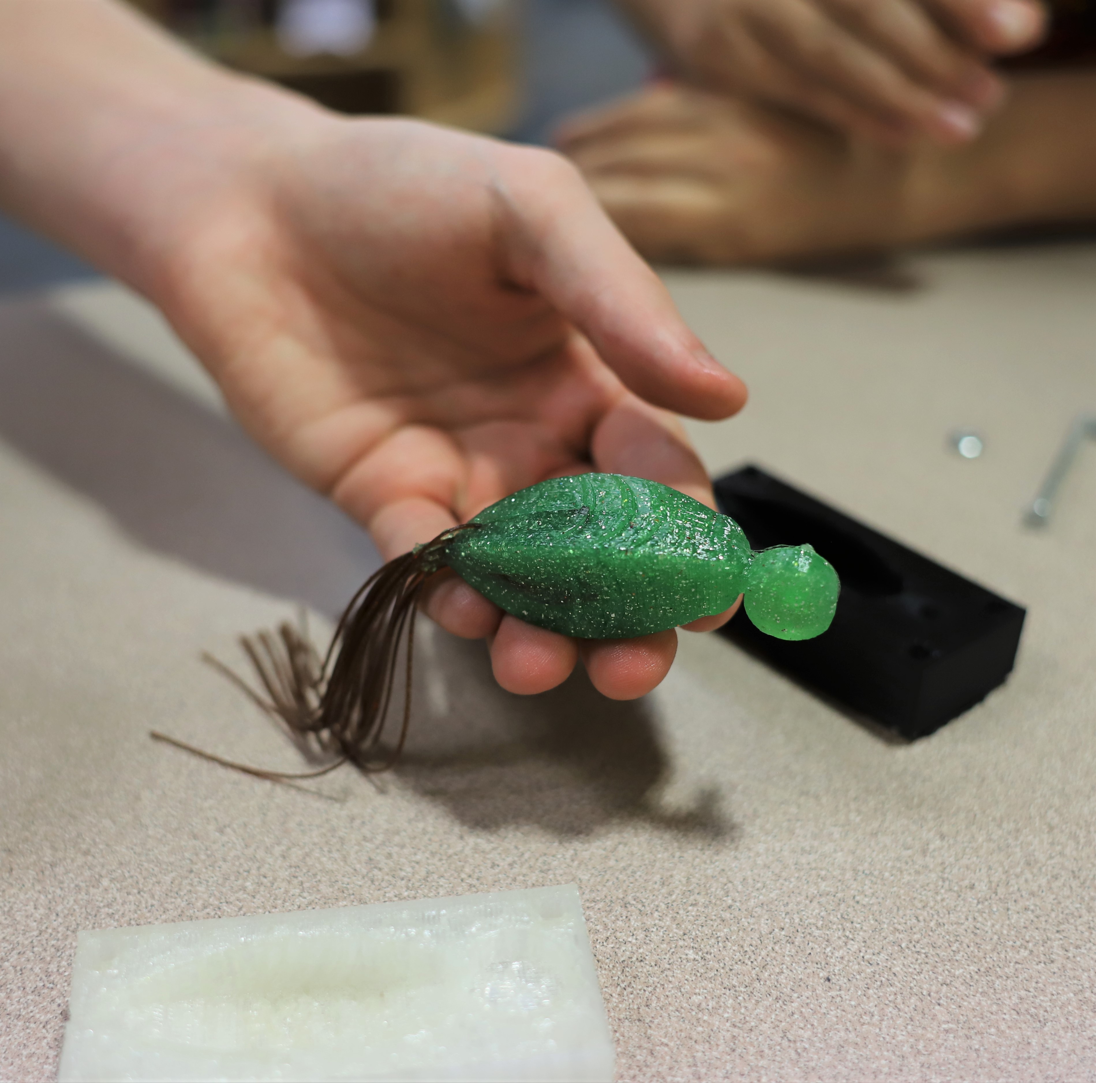 Finally, each team made a PowerPoint presentation of their experience, including a reflection on their performance in terms of communication, creativity, collaboration, critical thinking, and computational thinking. An expert angler was present for some of the final presentations and inspected the lures close-up. The students listened intently to his critiques. One group was surprised when he told them, “You could market this if you’d make just this one little change.”