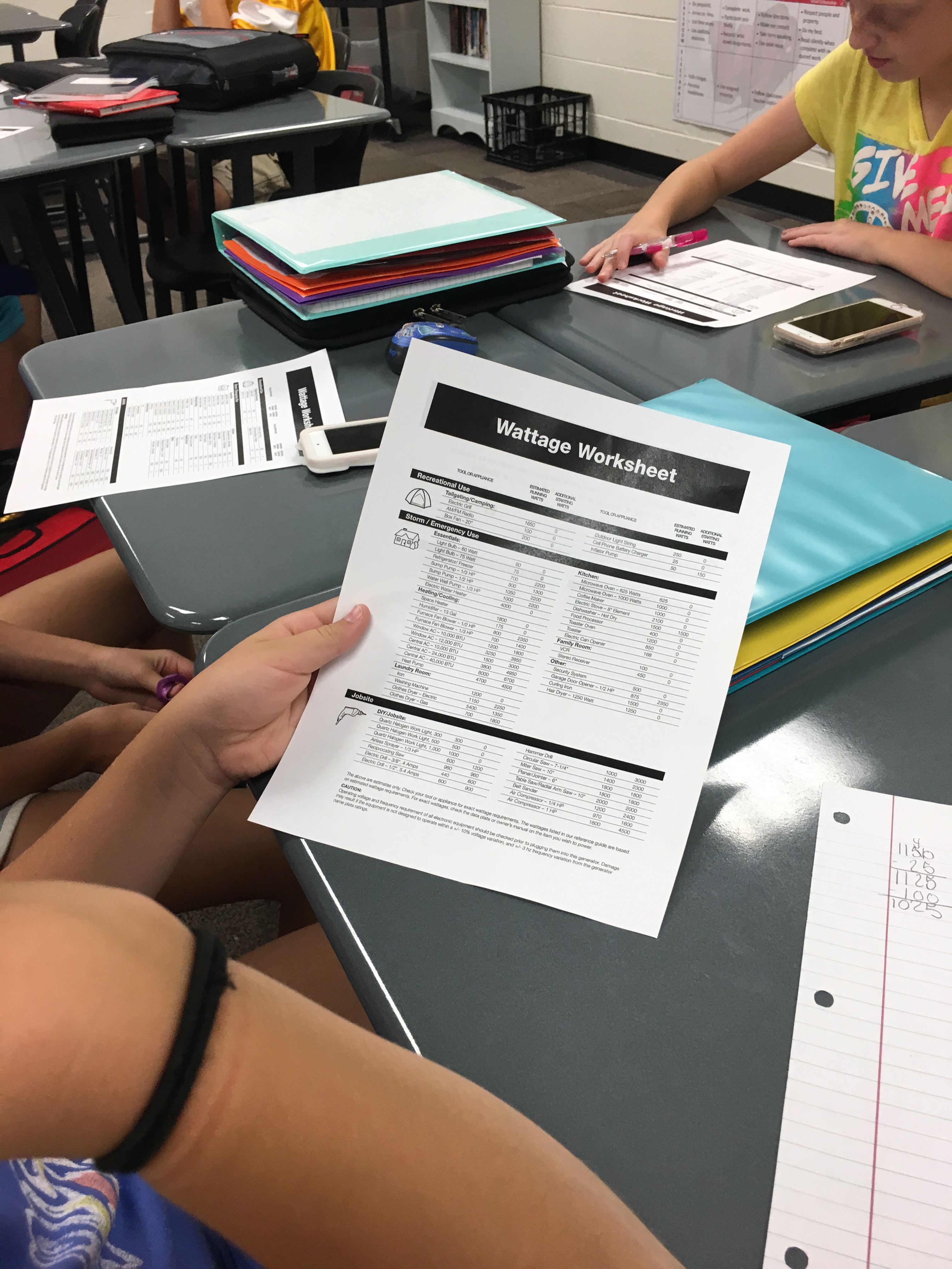 The students pondered their choices, added up their wattage, prioritized, made decisions, and practiced a bit of creative thinking. And then they were asked to take the worksheet home and talk with their parents, to see if their parents’ priorities were the same.  The students knew right away they wouldn’t be.